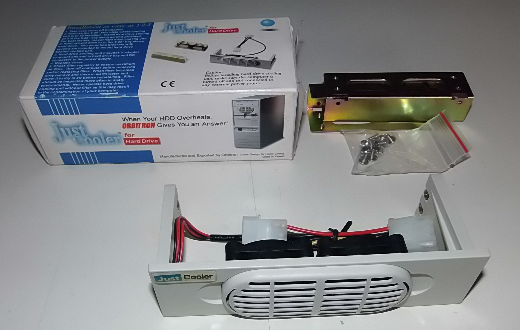 Egy 5,25-ös helyre szerelhető be, a csomag tartalmazza a beszereléshez szükséges 3,5 -> 5,25-ös síneket és csavarokat is. Egy Molex tápcsatlakozó látja el mind a két ventilátort a szükséges árammal.