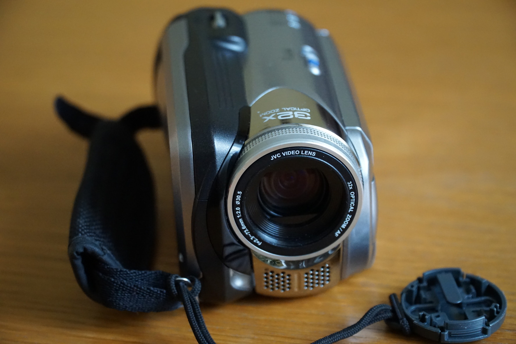 JVC Everio G 20GB merevlemezes tárolóhelyű belső 32xzoom,SD kártya foglalatú digitális videokamera.Fényképezni is lehet vele.Beépített mikrofon és világítás.