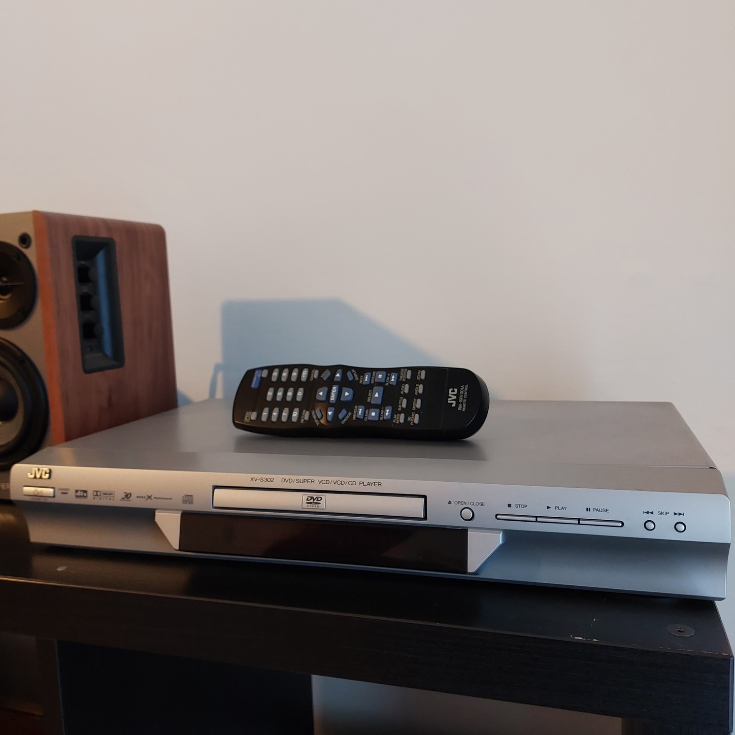 Eladó a képen látható jvc xv-s302 dvd lejátszó. Kis hibája, hogy üres állapotban a tálcát szereti visszanyitogatni. Van, hogy egyáltalán nem csinálja, van hogy 5-6x eljátsza aztán abbahagyja. Ha kap egy dvd-t nem csinálja. Ezt leszámítva hibátlan működik. Pár karc és kopásnyom van a burkolata tetején, de semmi vészes. Gyári távirányítójával, tápkábel nélkül adom (külső tápkábeles).