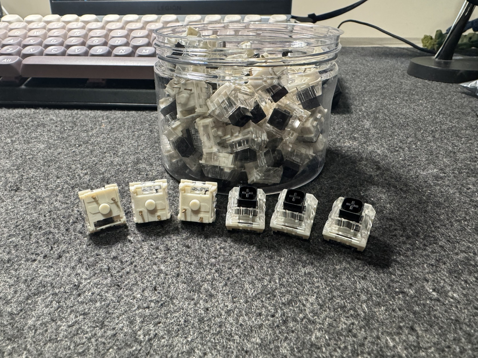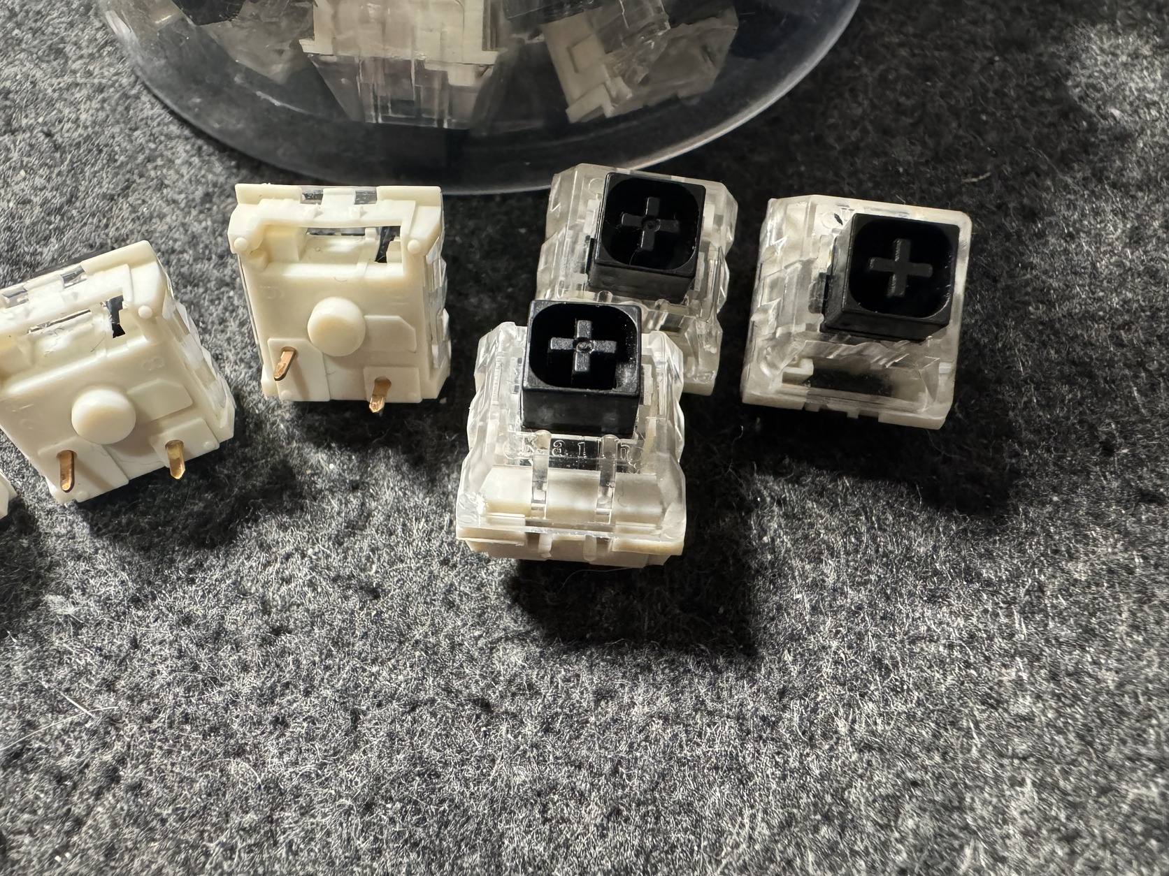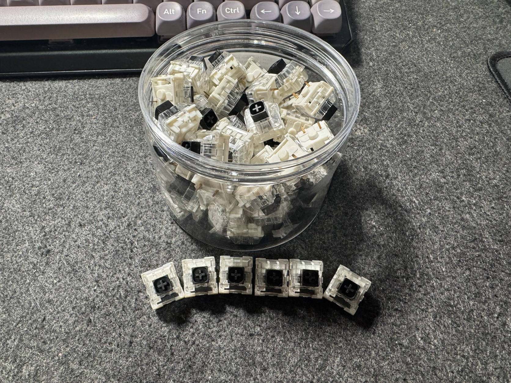 Switch csere után megmaradt hibátlan Kailh Box Black switchek.