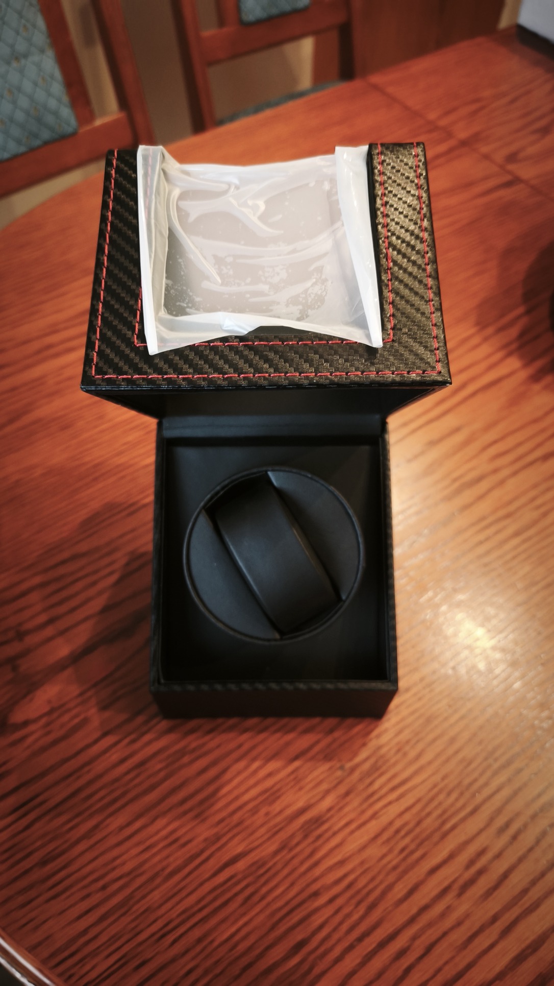 Fekete, műbőr bevonatos óradoboz –