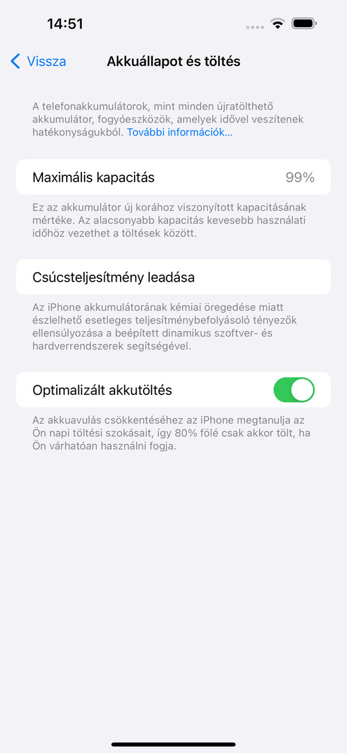 Az akku állapota – 99%.