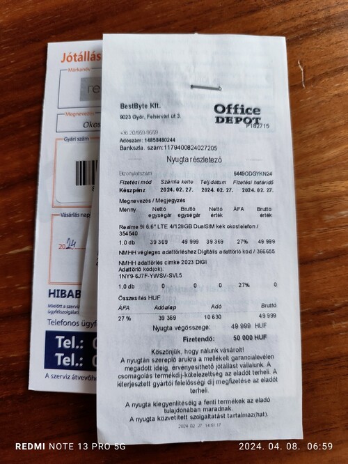 A telefon kb másfél hónapos még kettő év garancia van rá pontosan. 2026.02.27-ig garanciális.