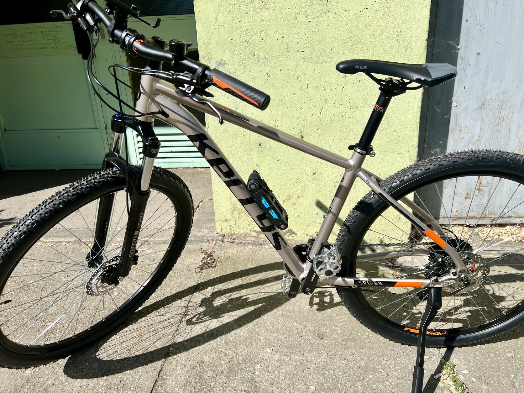 Mindkét kerékpárra lett szerelve oldaltámasztó, valamint mindkét kerékpárra lett szerelve egy KLS Fold 30 hajtogatós lakat. (Férfi kék, nöin zöld)
