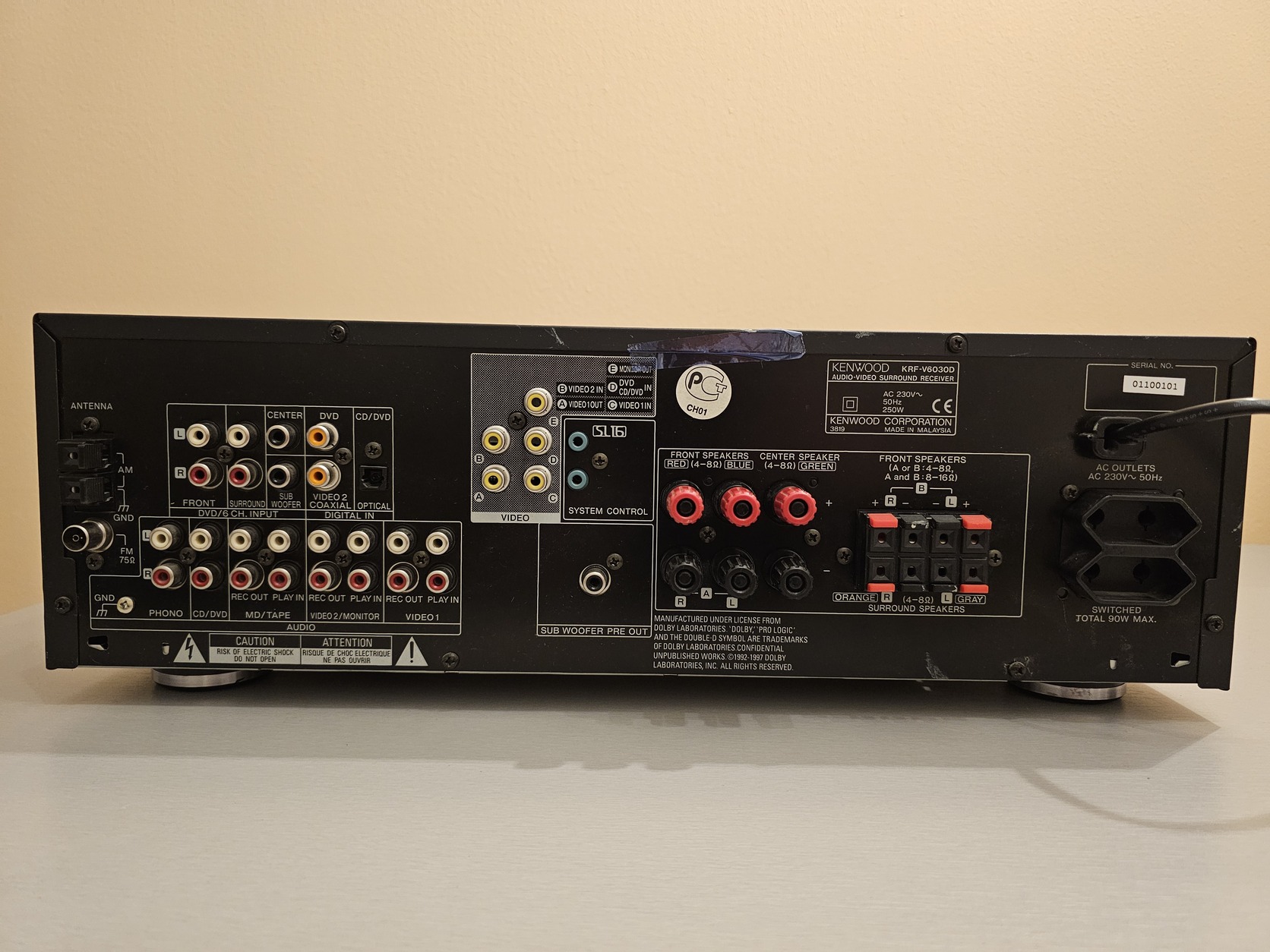 Phono bemenet, optikai bemenet, 2 db AC aljzat, monitor-out (ráköthető pl. equalizer), 5x100 W, Subwoofer pre-out, távirányító.. stb.