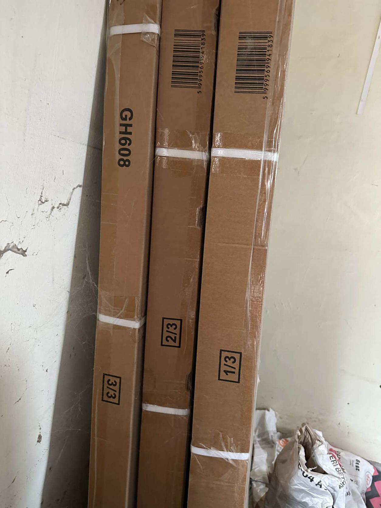 Lapra szereltek, több dobozból állnak, a dobozok kb. 27 kg súlyúak.