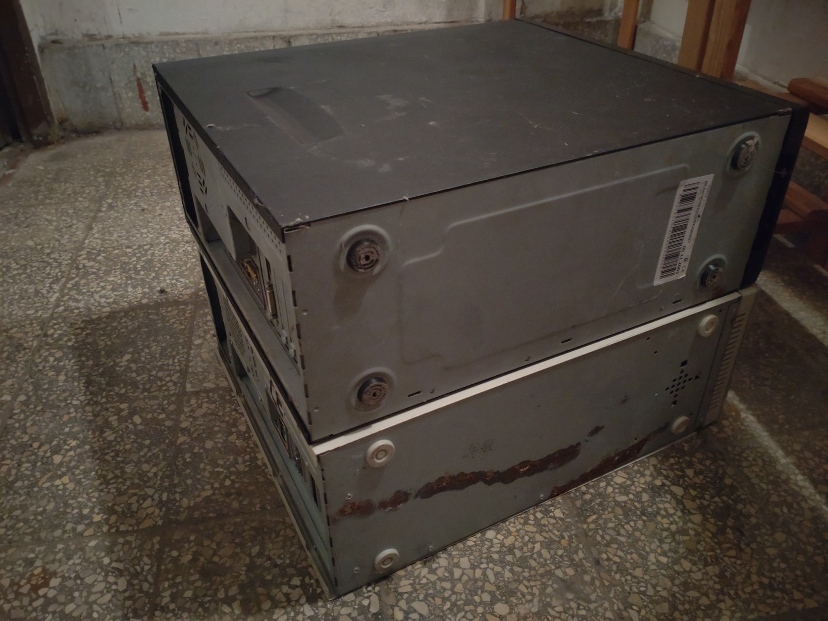 Ingyen elvihető két hulladék számítógép. A képen szereplő állapotban tartozékokkal. 10+ éve nem voltak bekapcsolva, nem tudom működnek-e. Nem voltak jó körülmények közt tárolva, erősen retkesek és pókhálósak belül.