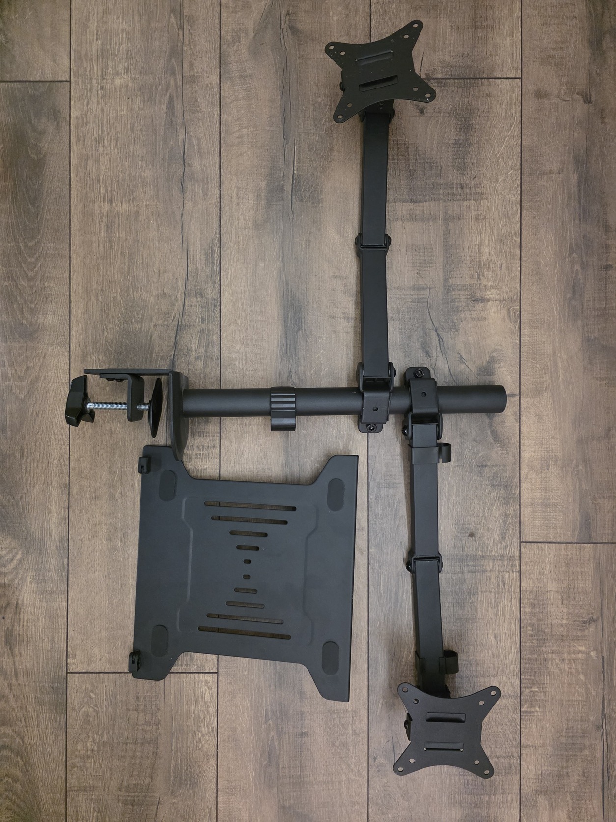 Két karos monitor állvány laptop tartóval