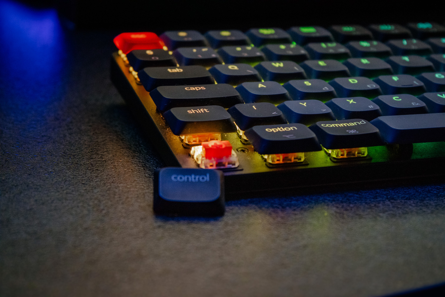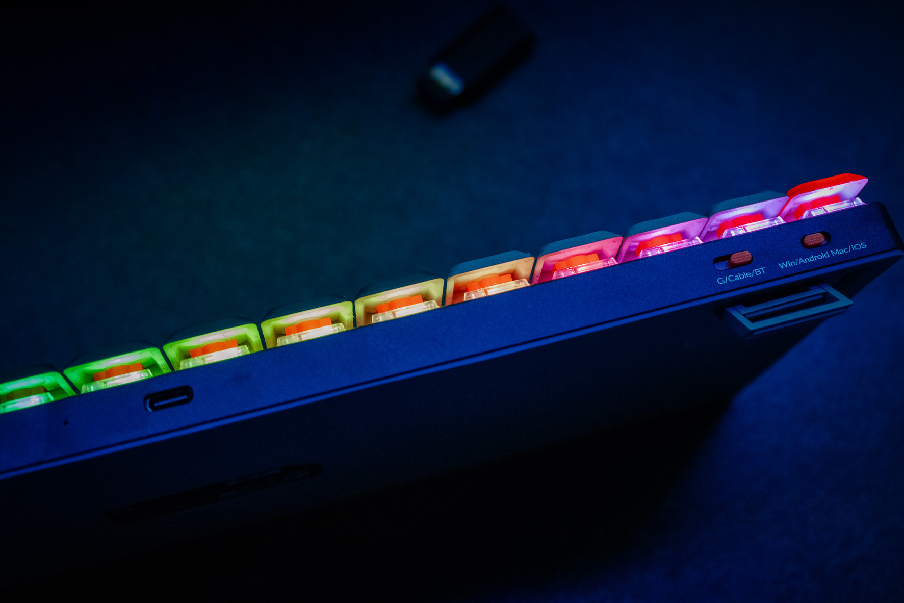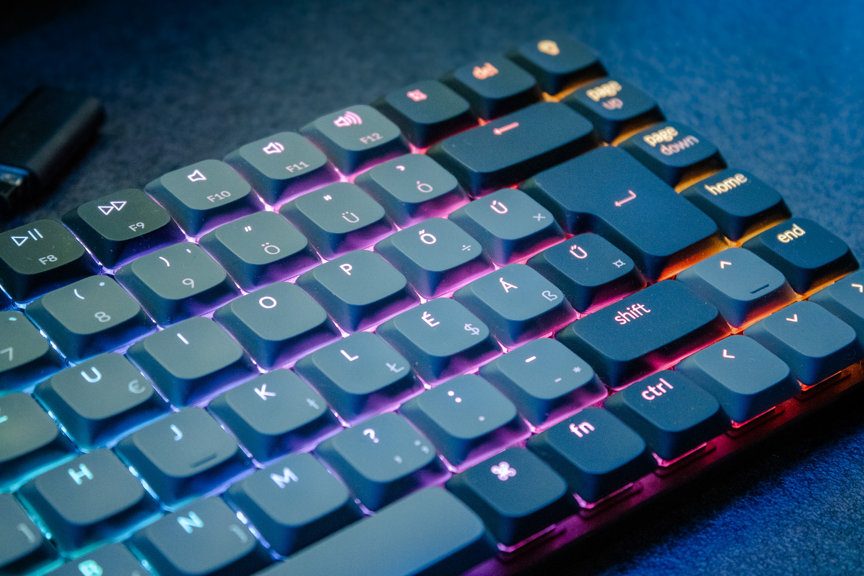 - Low Profile mechanikus RED kapcsolók (csendes, gyors gépelés, irodai környezetben is ideális)