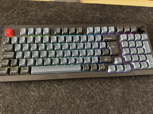 Eladó a címben említett KEYCHRON V5 Max RGB Knob Swappable Gateron Jupiter Brown Magyar fekete billentyúzet.