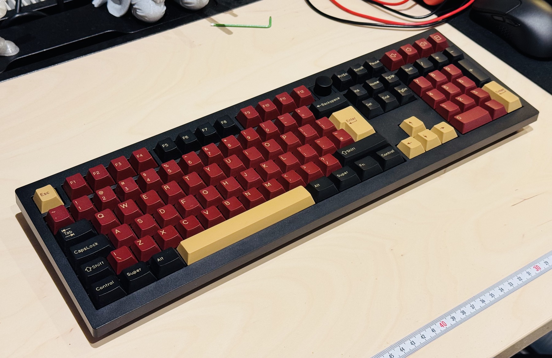 Keychron V6 Max ISO + Epomaker Budgerigar tactile switch + KBDiy Red Samurai keycap + porvédő