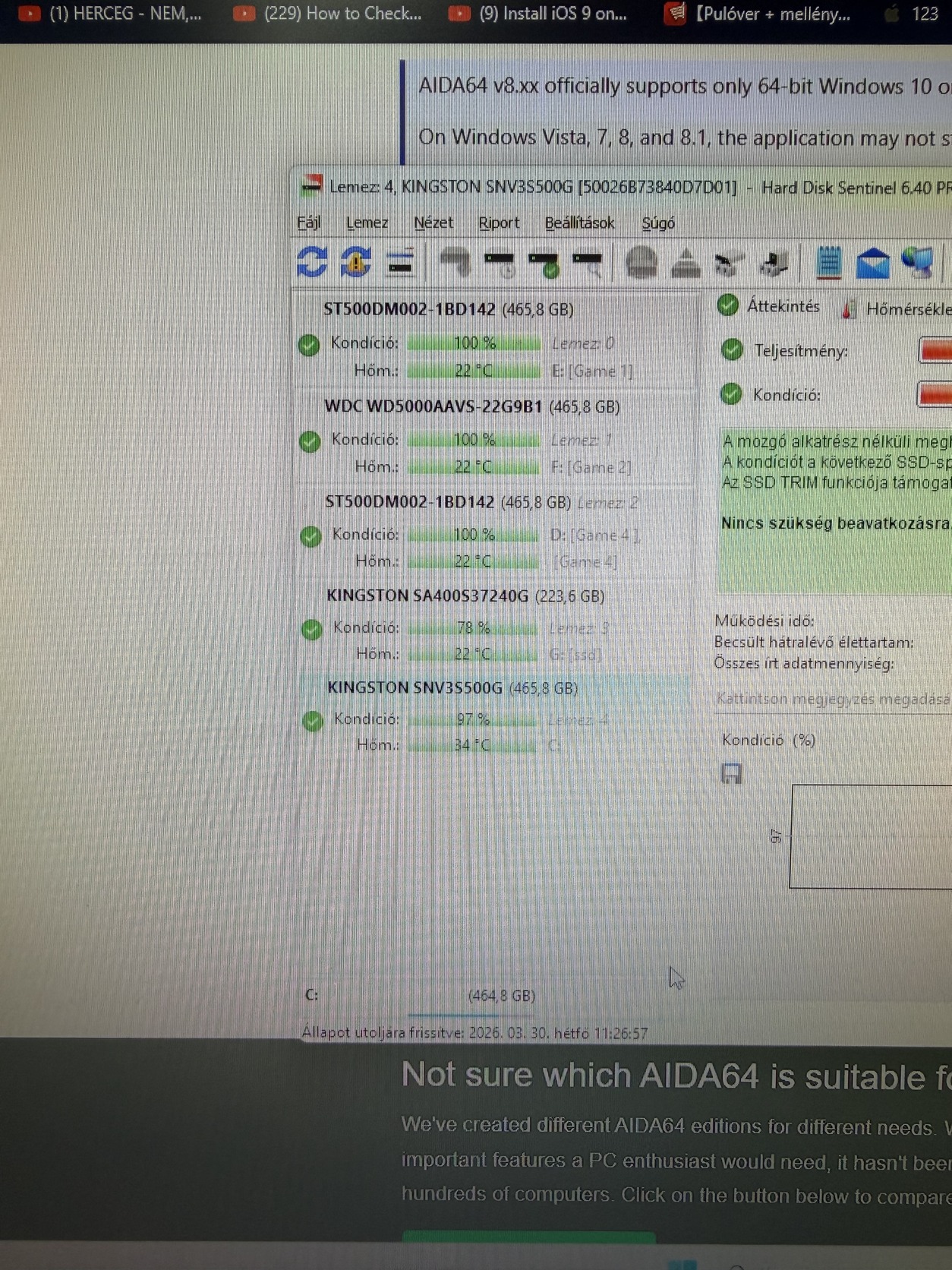 -tárhely: 3DB 500GB HDD, 2DB SSD egyik 250GB a másik 500GB M.2