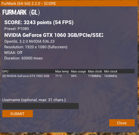 Főképp Fortnite, World of Tanksot toltam vele, kiválóan futtatta őket. Hűtése kiváló, nem melegedett nálam. Mellékeltem egy Furmark teszt képet is (I5-4690K procival ment le)!