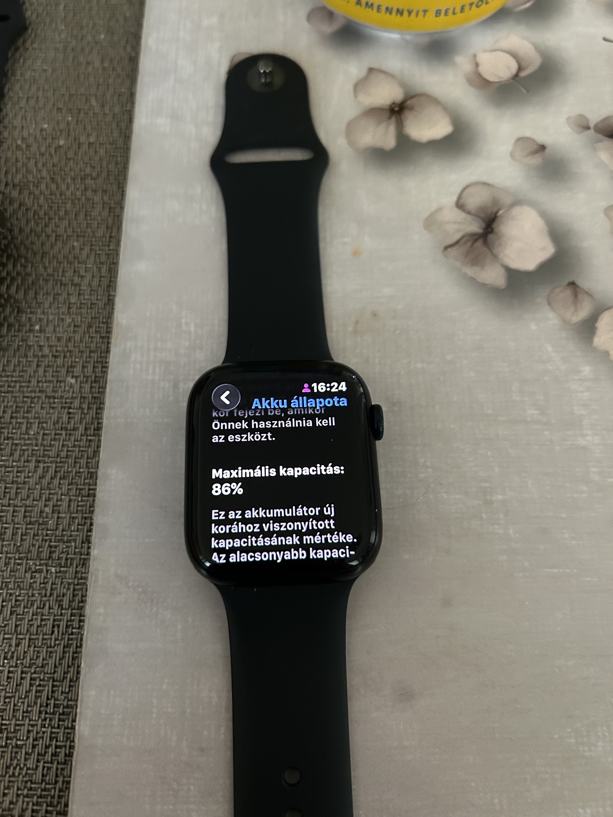 - akkumulátor 86%, 1.5 -2 napot bír.