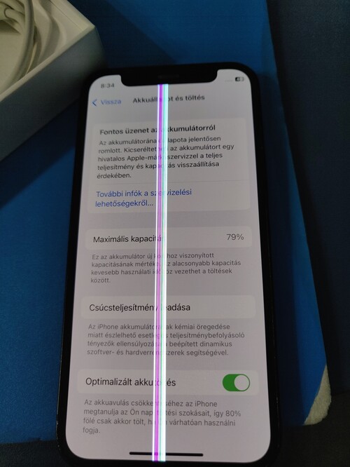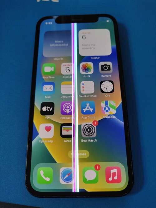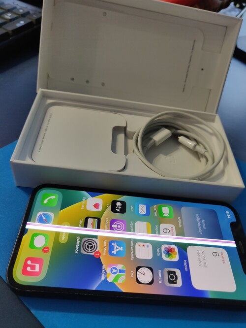 A kijelzőben középen sajnos van egy vastag csík, így sajnos ez cserére szorul. (egyébként a kijelző mindenhol érintkezik)