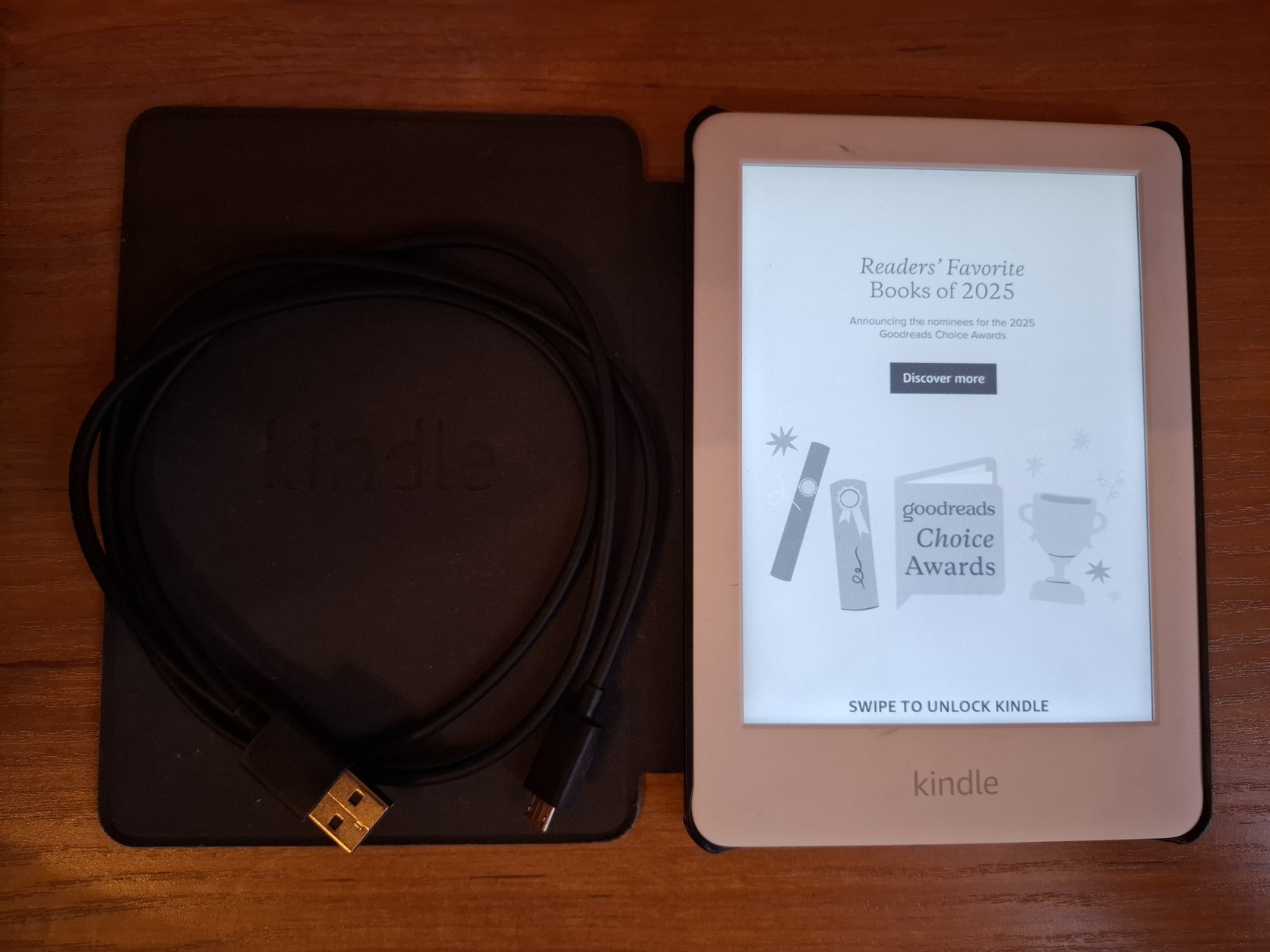 Eladó reklámos Kindle touch, a képen látható állapotban, tokkal és USB kábellel.