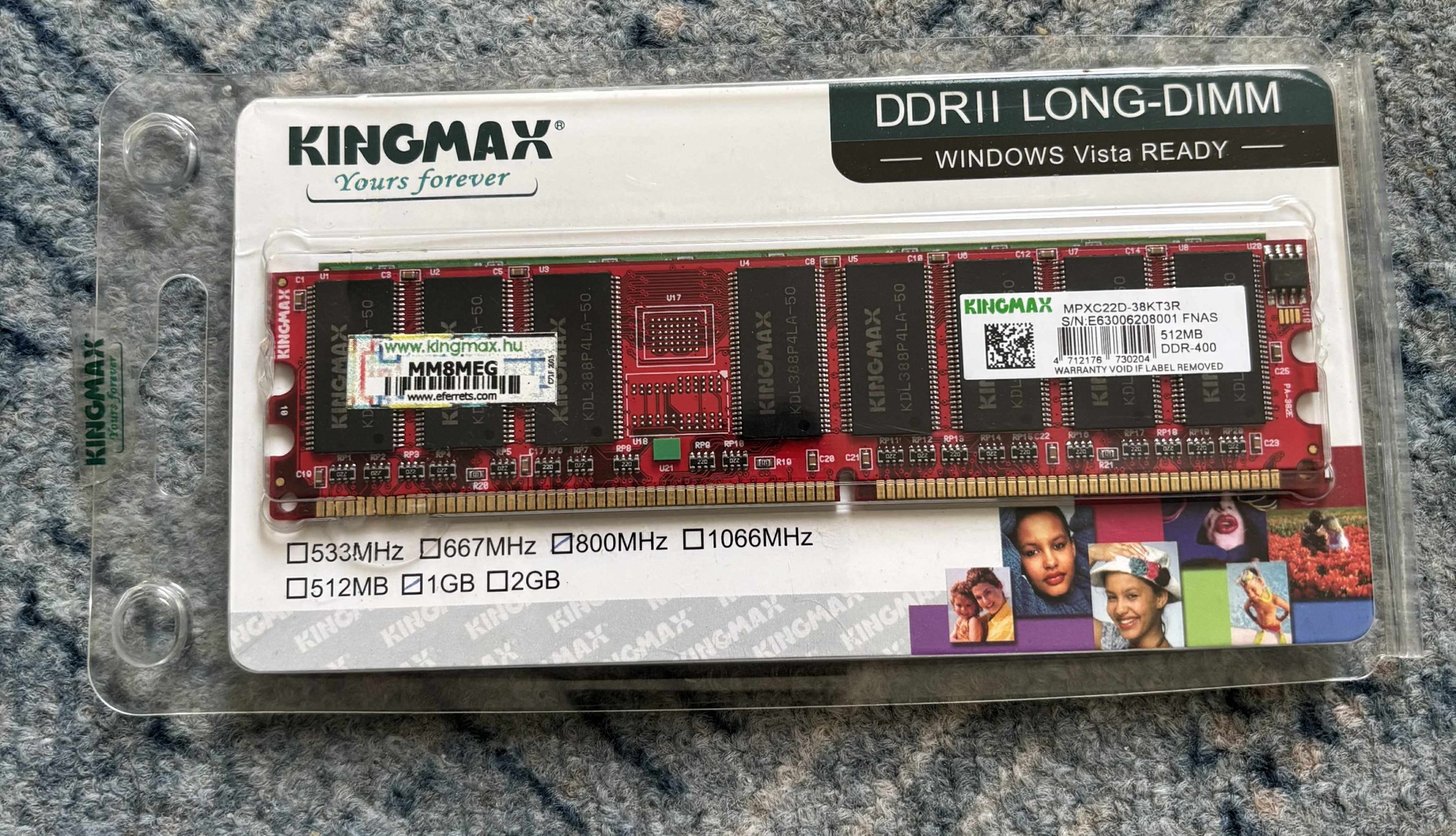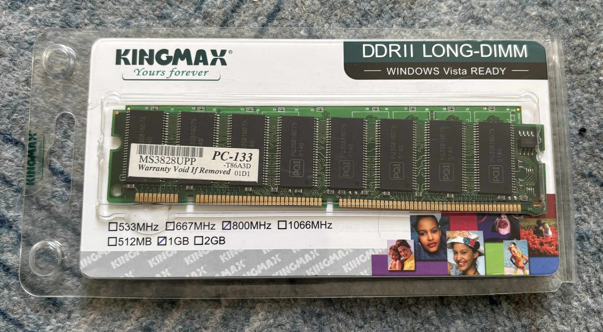 DDR2, 800MHz, 1GB.