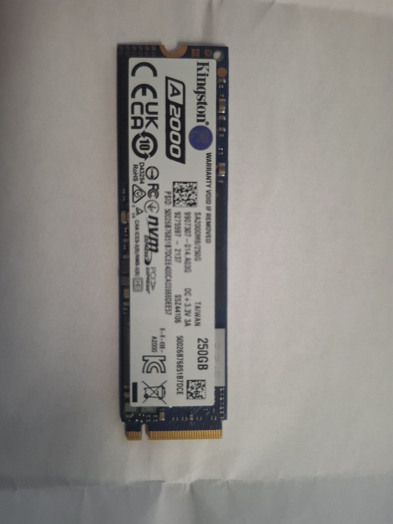 Jegelve – Kingston 256GB M2 PCIe NVMe SSD