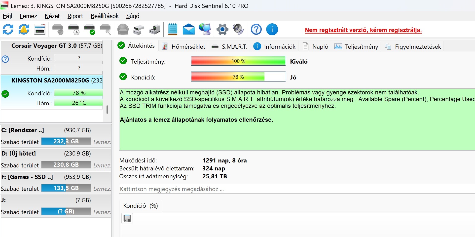 Egy NTFS particióba formázva "üresen" várja új gazdáját.