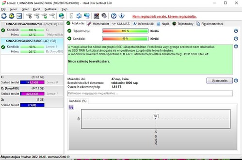 Eladó a képeken látható, használt Kingston A400 SATA-3-as 2,5"-os 480 GB-os SSD. Hiba nélkül működik.