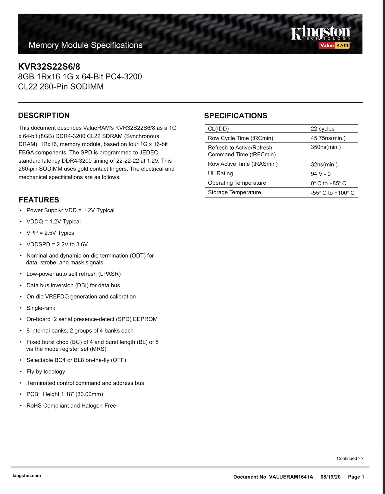 Kingston DDR4 8GB 3200Mhz - 1db