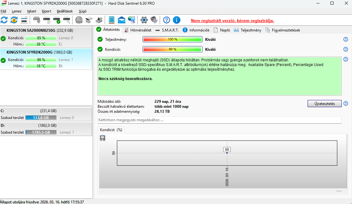 BESZÁMíTOK!! Kingston FURY Renegade 2TB Kondició: 99% Teljesítmény: 100% GARI: 2028.11.15