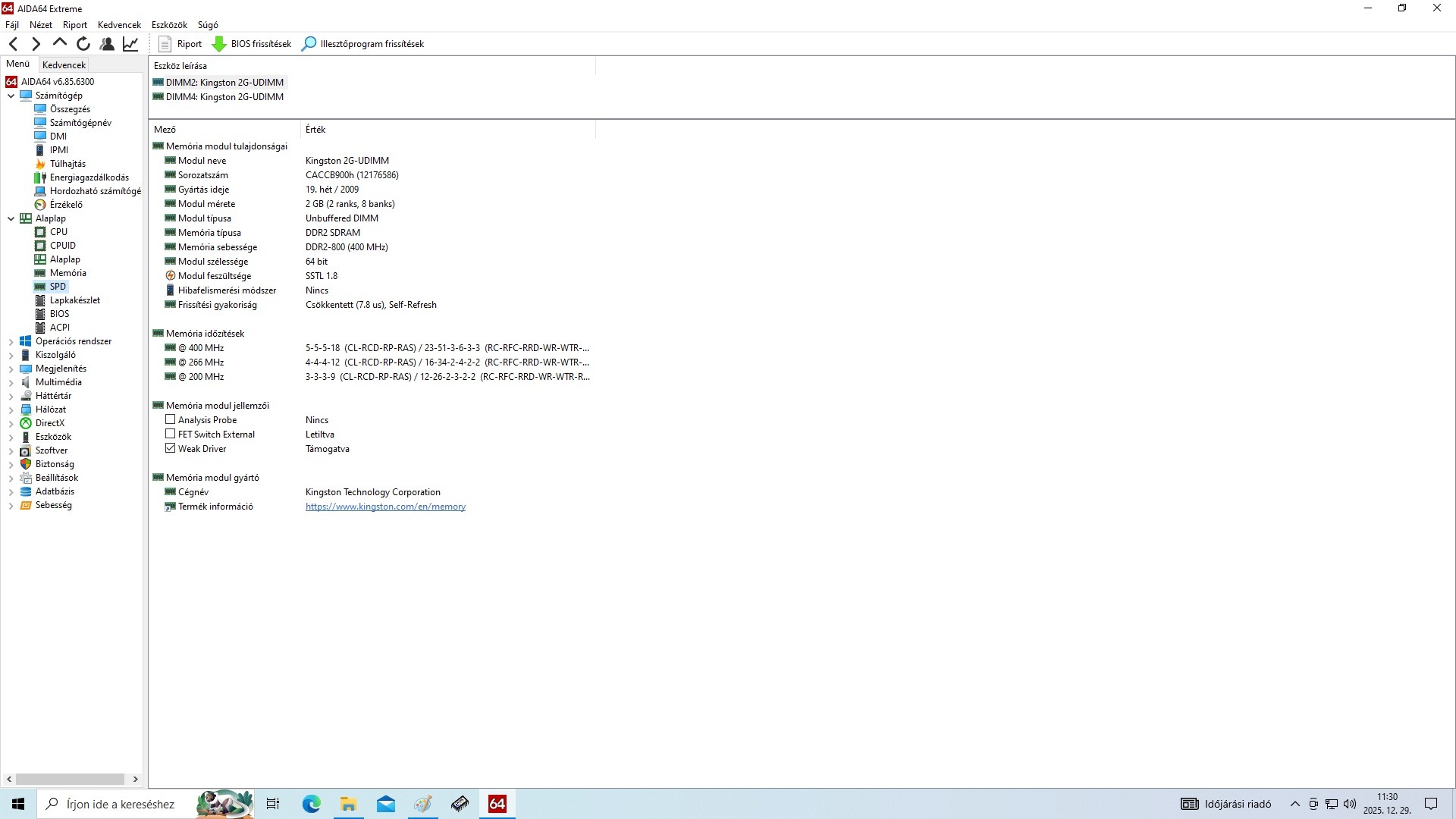 Kiszerelés: 2x2GB (kit)