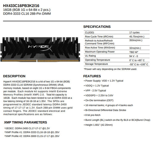 Eladóvá vált a két darab modulból álló 16 GB-os kit HX433C16PB3K2/16