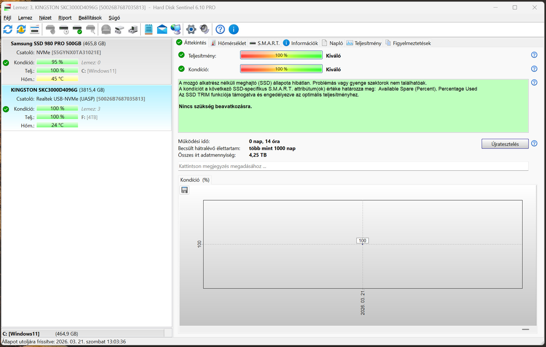 Eladó a külső tokban használt Kingston KC3000 PCIe 4.0 NVMe M.2 SSD-m.