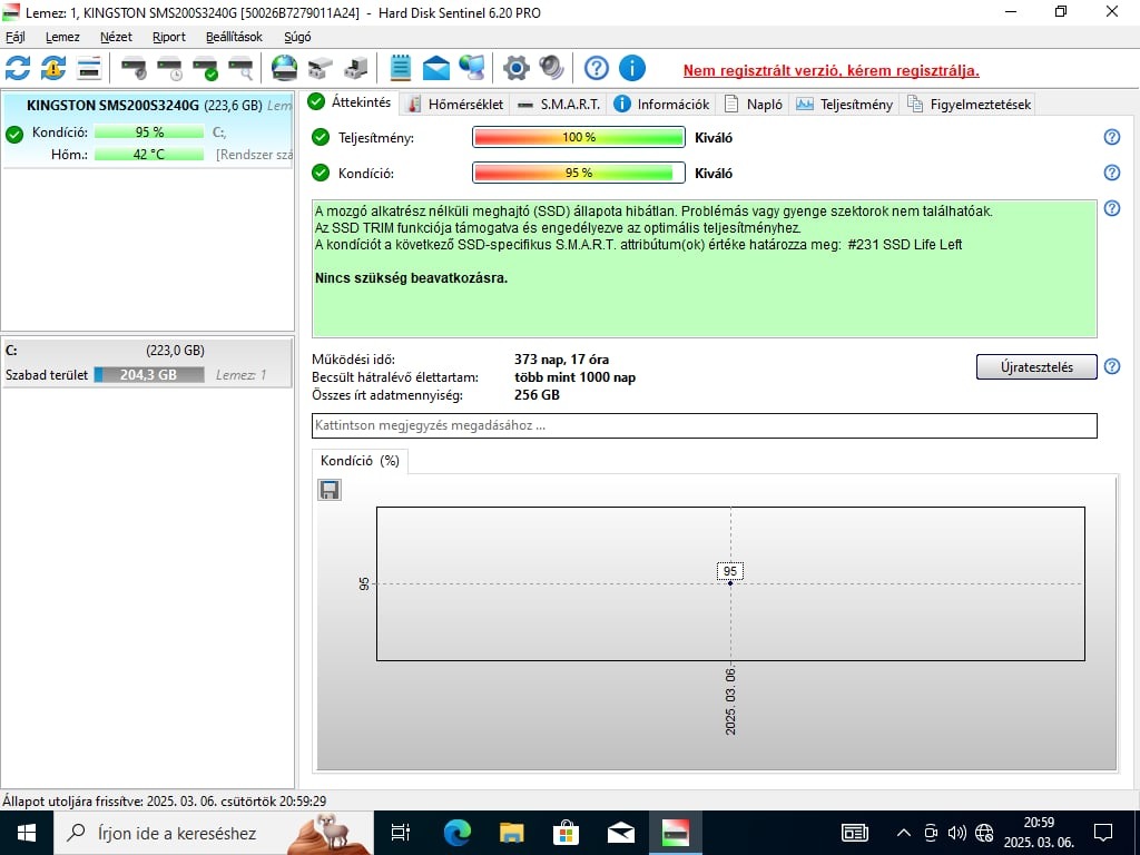 -kapacitás 95% kondíció