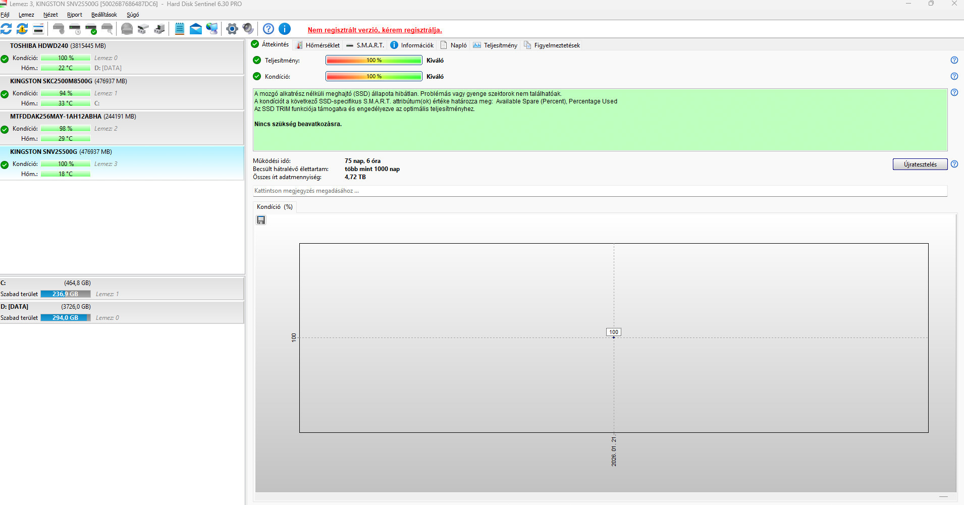 Jegelve – Kingston NV2 500GB NVME SSD m.2 - notebook - HD Sentinel 100/100