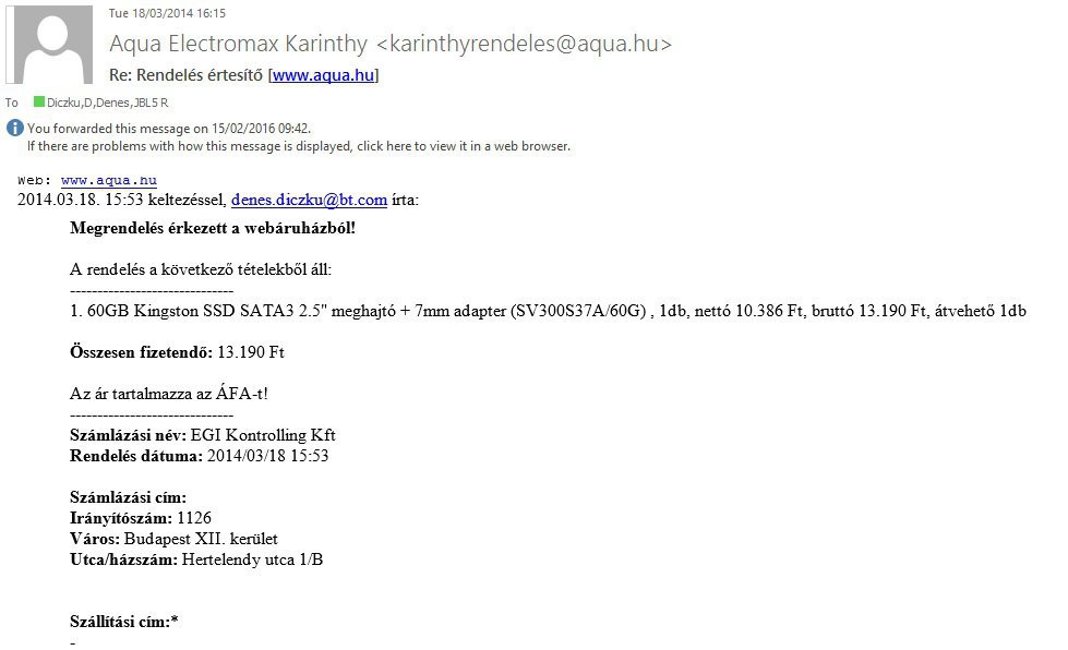 Vásárlás helye/dátuma:AQUA Computer 2014/03/18.