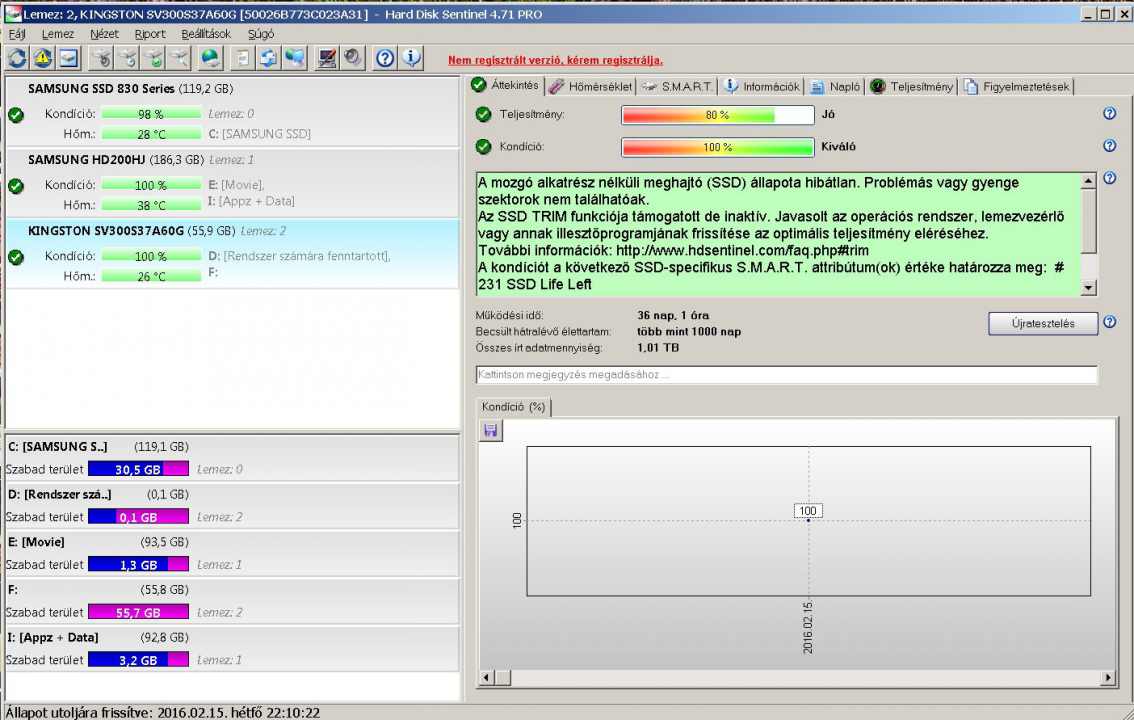 Kívánt programmal készíthetek az állapotáról képet.