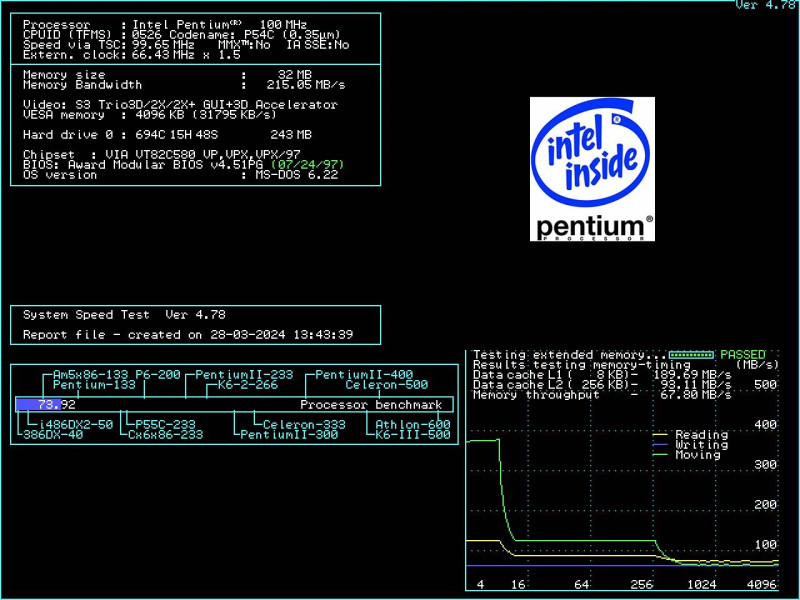 A processzort teszteltem és egy Intel Pentium 100-assal össze is hasonlítottam. Az eredmények a fotókon megtekinthetőek.