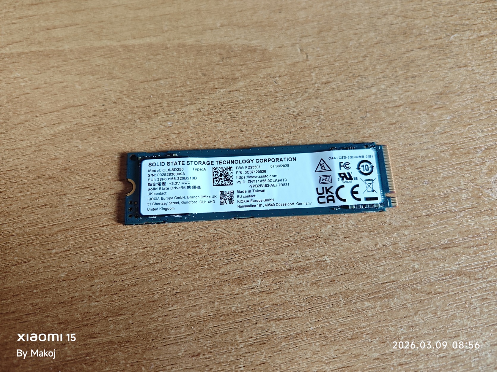 Kioxia 256GB NVME M.2 SSD