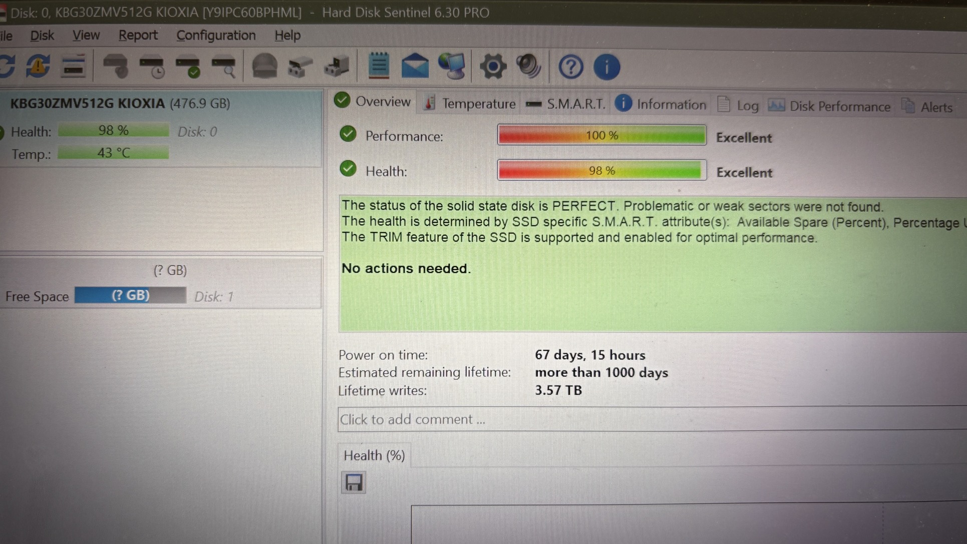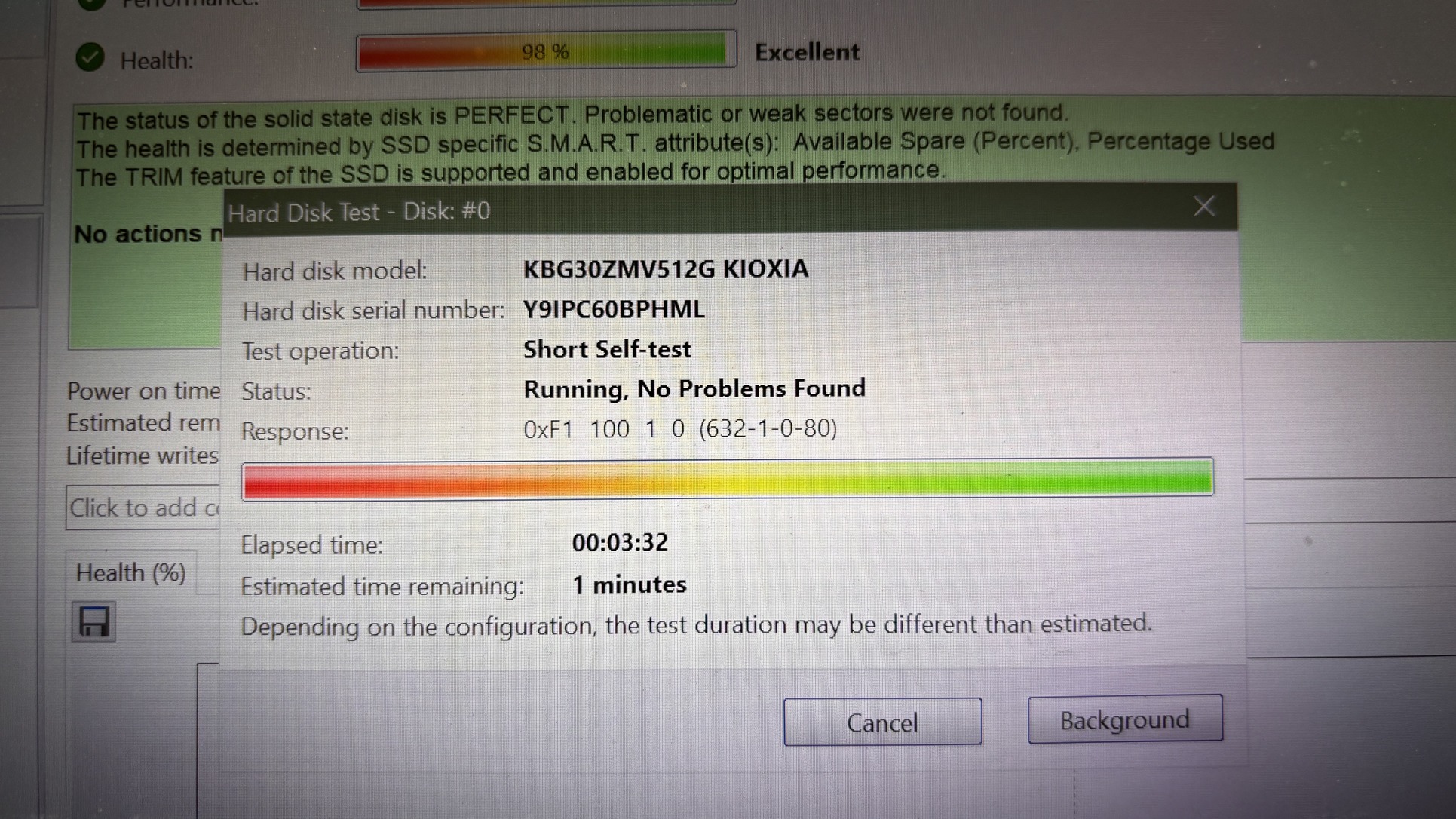 Eladó a képen látható (Toshiba) Kioxia (KBG30ZMV512G) BG3 típusú NVMe SSD.