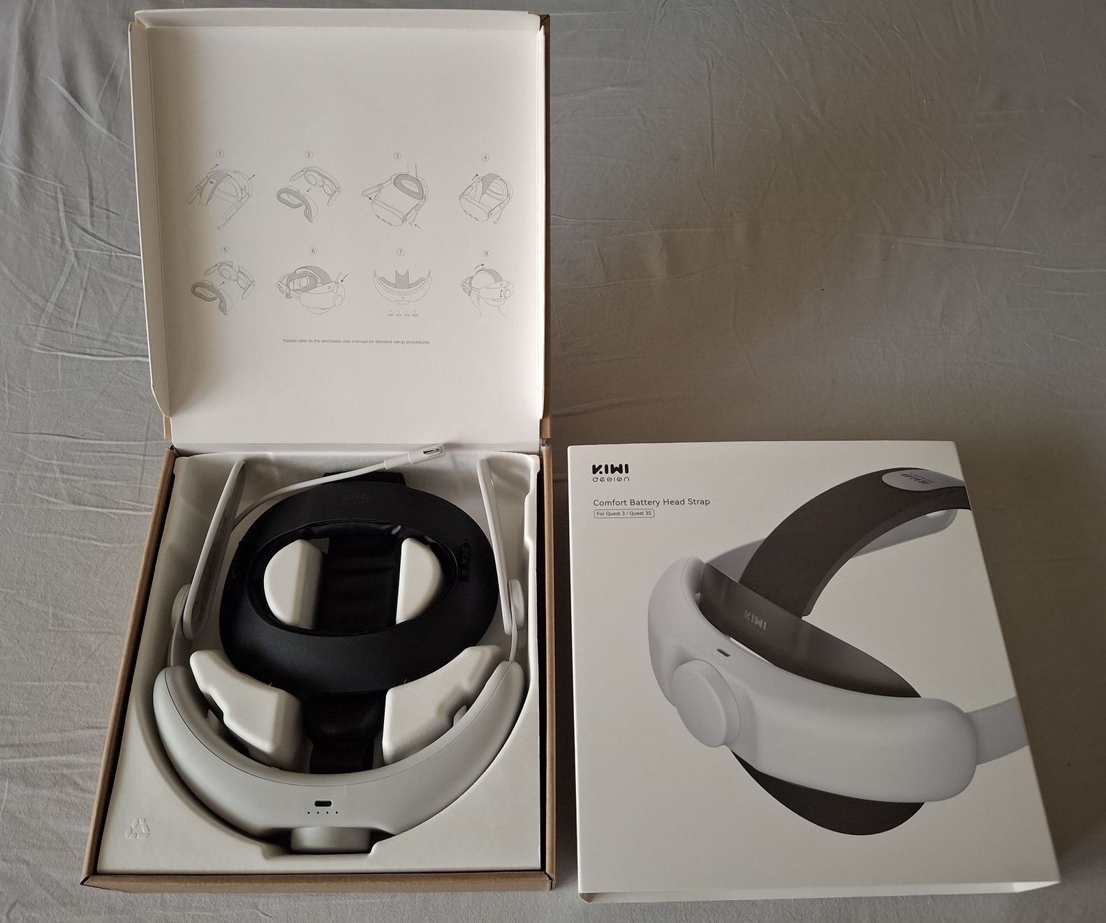 Eladó dobozában egy számlával igazolt, 2 hónapos, tökéletes Kiwi Design Comfort akkumulátoros (6400mAh) fejpánt, Meta Quest 3 és 3s VR szemüveghez, tipusváltás (Bobovr) miatt.
