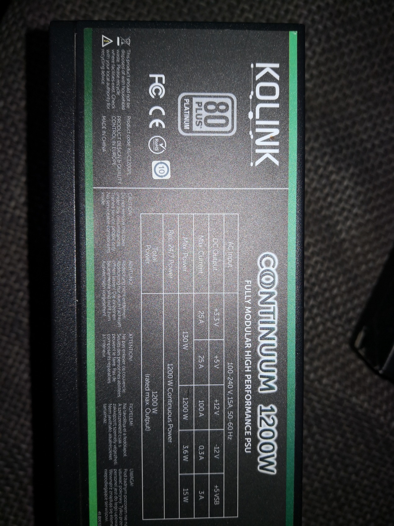 Kolink continuum 1200w 80+platinum full modular