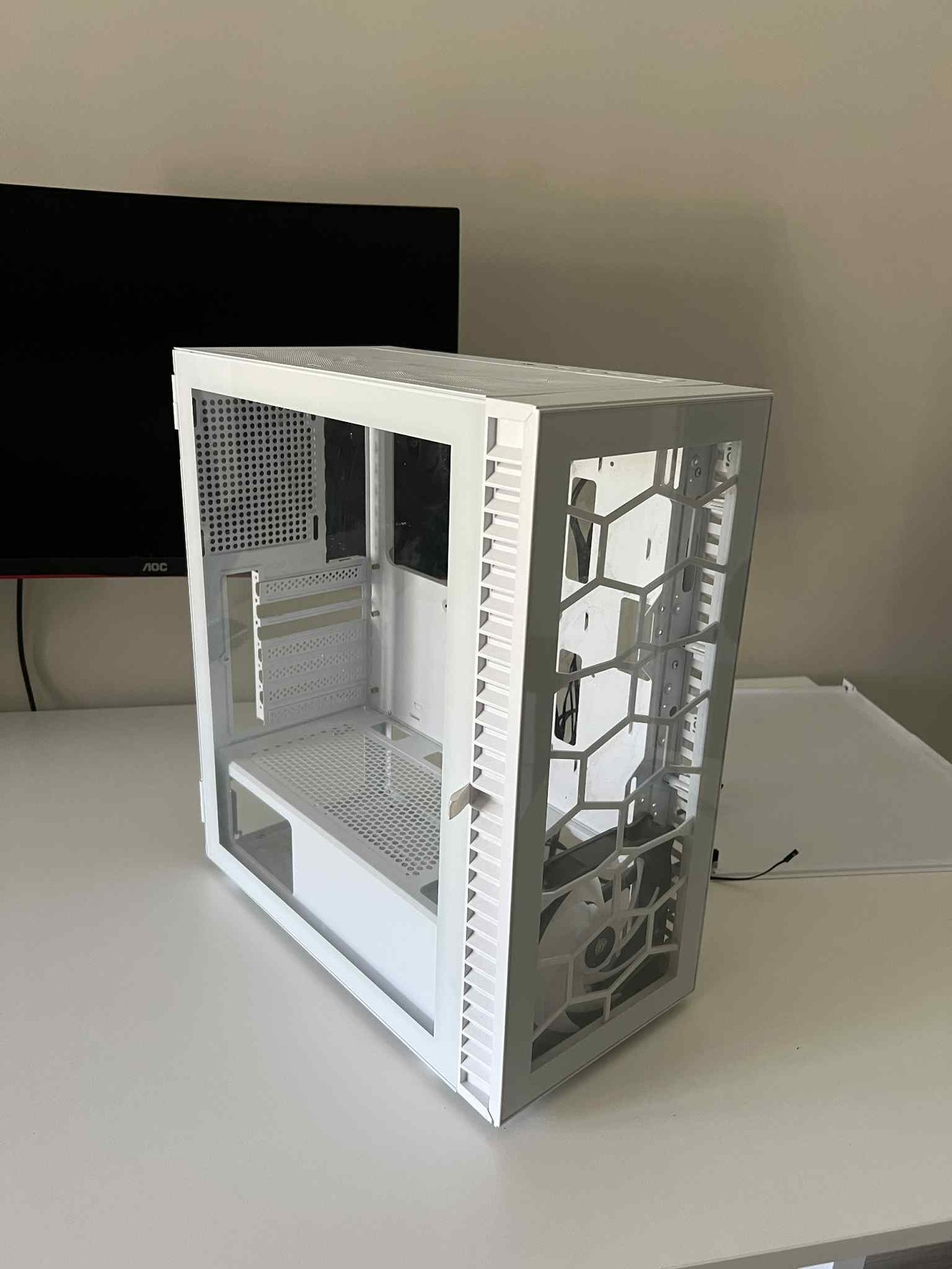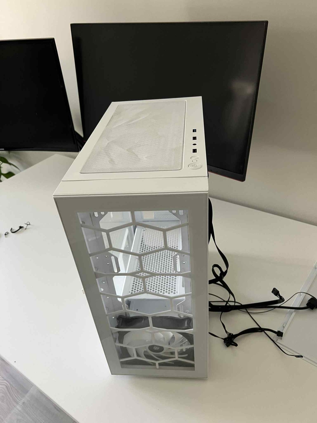 A Kolink Observatory HF üveg ablakos fehér gépház tökéletesen teljesített az évek során. A Gépházhoz minden alkatrész hibátlan minőségben van, a porszűrő kissé gyűrött. A számítógépházat egy TUF Gaming alaplappal használtam, ami elérhetővé tette az Armoury Crate alkalmazás segítségével a ventillátor színének a változtatását.