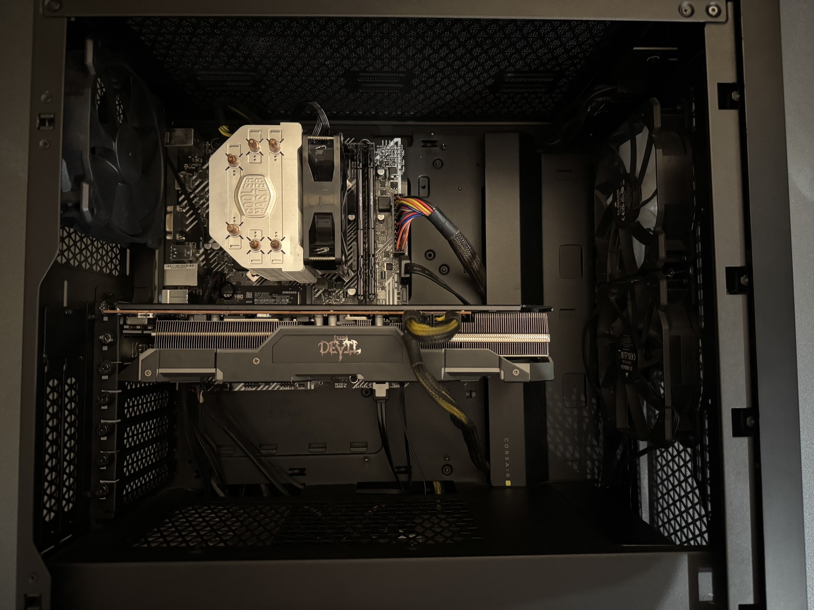Gépház:Corsair 4000D Airflow(az oldalsó edzett üveg egy takarítás alkalmával megadta magát,így az hiányzik)egyébként a doboza is meg van.