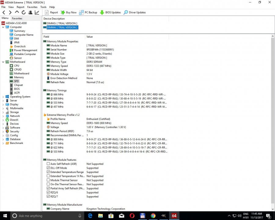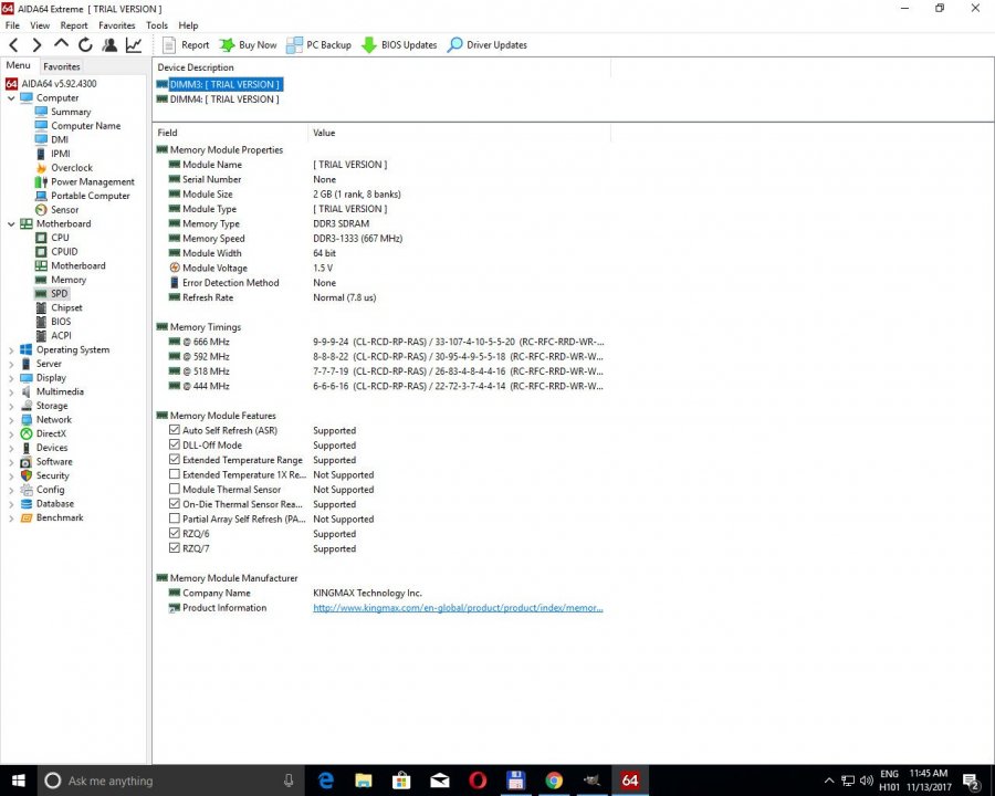 Ram: 2X2Gb Hyperx Blu/Kingmax, dual channel 1333MHZ (memtest 100/100)