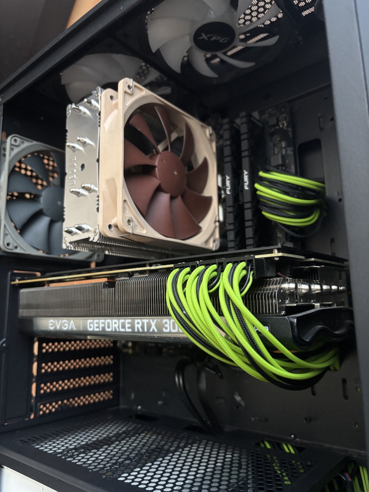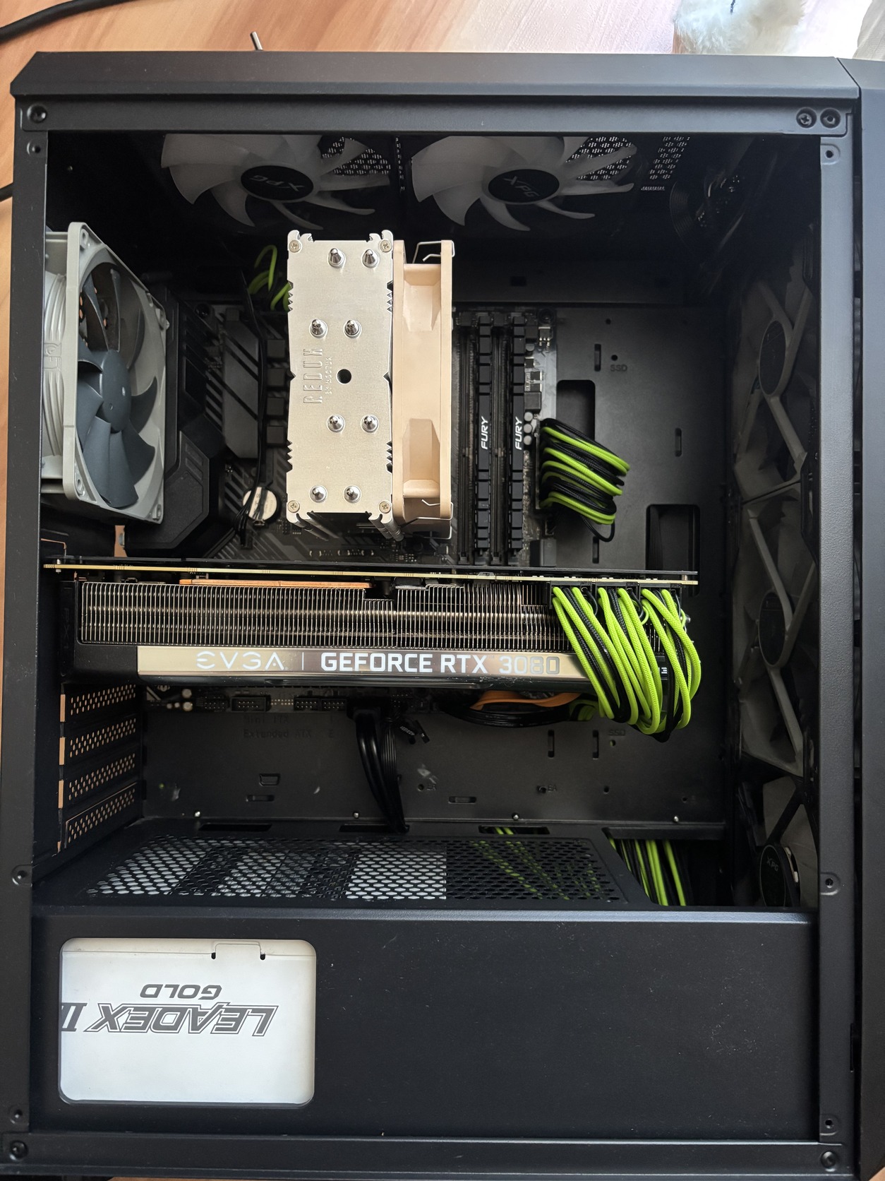 Ház: 2db 14cm-es Noctua, 2db 12cm-es Noctua, 3db 12cm-es XPG ventillátor