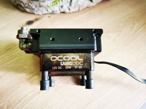 Pumpa: Alphacool Laing DDC fem alsoval es acetal fedellel. Mukodik, teszi a dolgat.