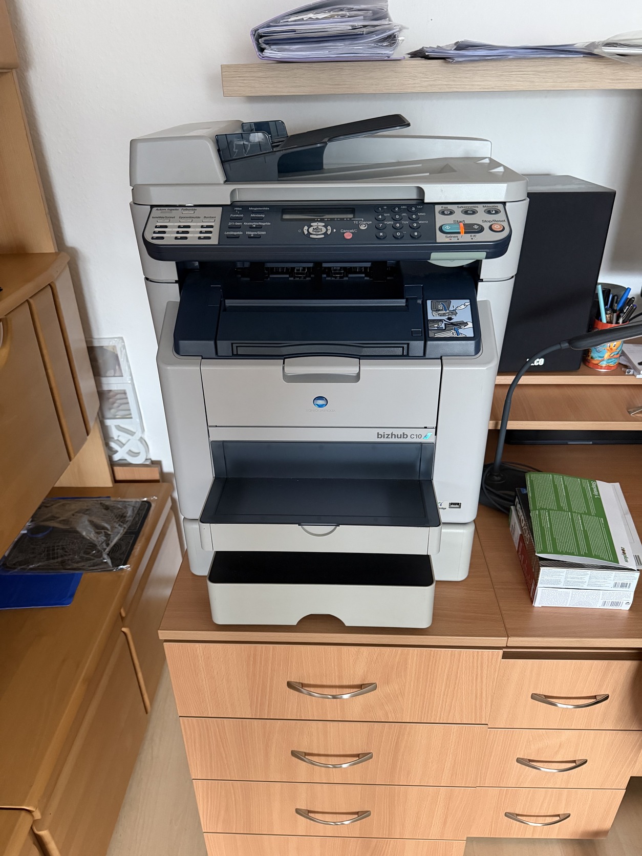 Két kiegészítő lett vásárolva hozzá, egy duplex dob ami lehetővé teszi a kétoldalas nyomtatást illetve egy 500 lapos plusz lapadagoló.