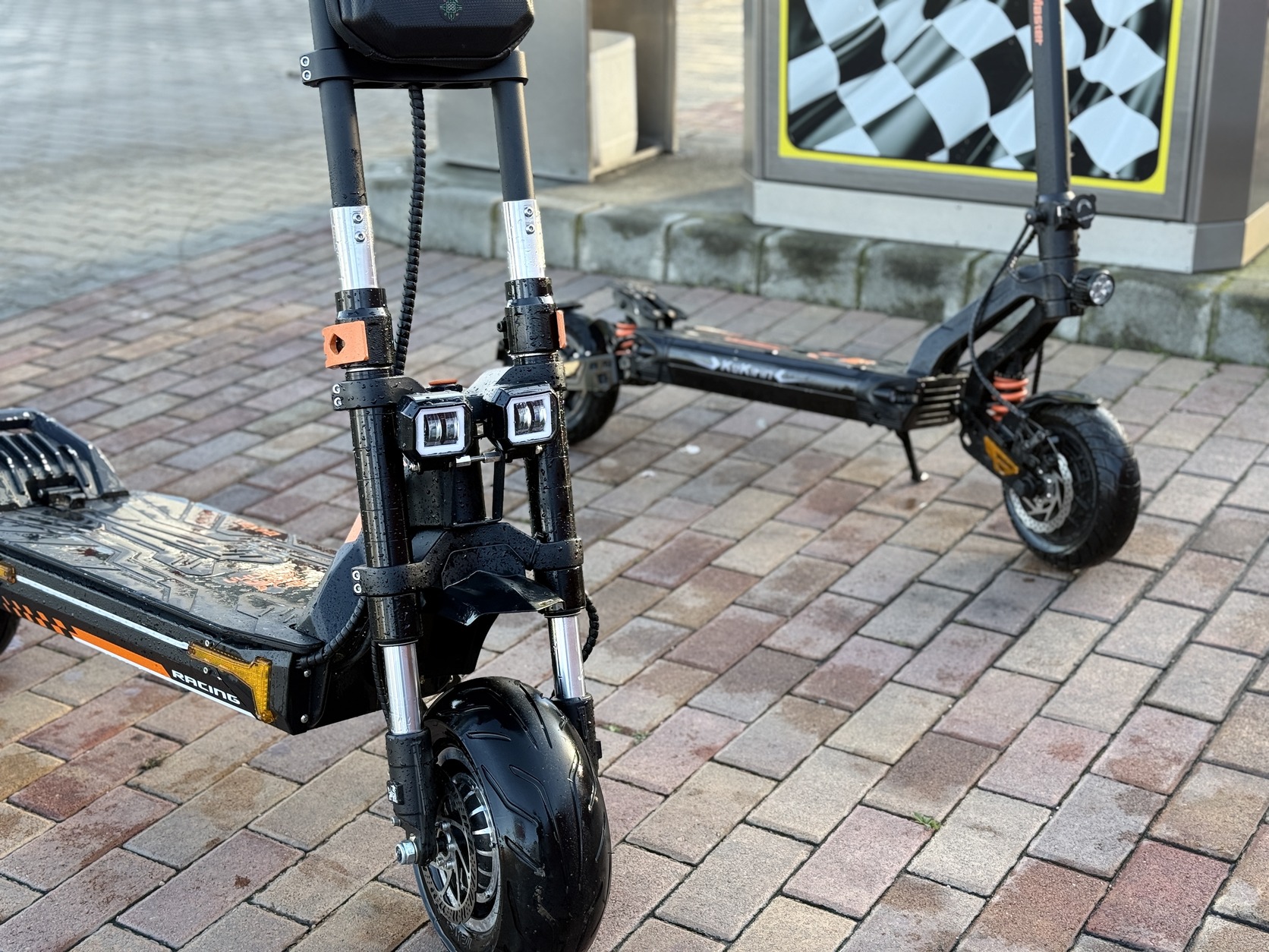 specifikációk:60v 40ah kivehető akkumlátor,3200w összteljesítmény(peak 4800w),Nagy 720mm kormány,angyalszemes fényszóró külön fényszóró kapcsolóval, X lámpa a táskán, karbantartva volt átlagosan 35-40-el mentem vele!