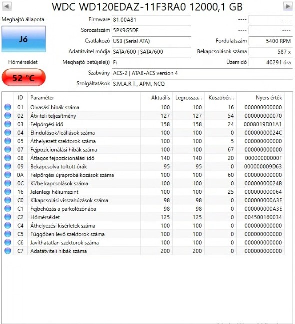 (Jelenleg is fut és fel van csatolva a HDD tehát a fenti képeken látható számokhoz képest némi eltérés lesz, annak függvényében, hogy a hirdetés feladás és a tényleges tranzakció között mennyi idő telik el.)