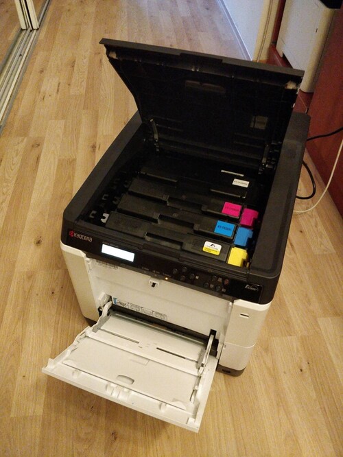 Feketén jól nyomtat, de a színes nyomatok nem 100%-osak (l. a próbanyomatot). Lehet, hogy csak a benne levő valamelyik toner túl régi, vagy csak ki kellene tisztítani a gépet és teljesen jó lenne. Nekem erre nem volt motivációm (és természetesen az is lehet, hogy valami a vártnál előbb elhasználódott benne és nem javítható gazdaságosan).