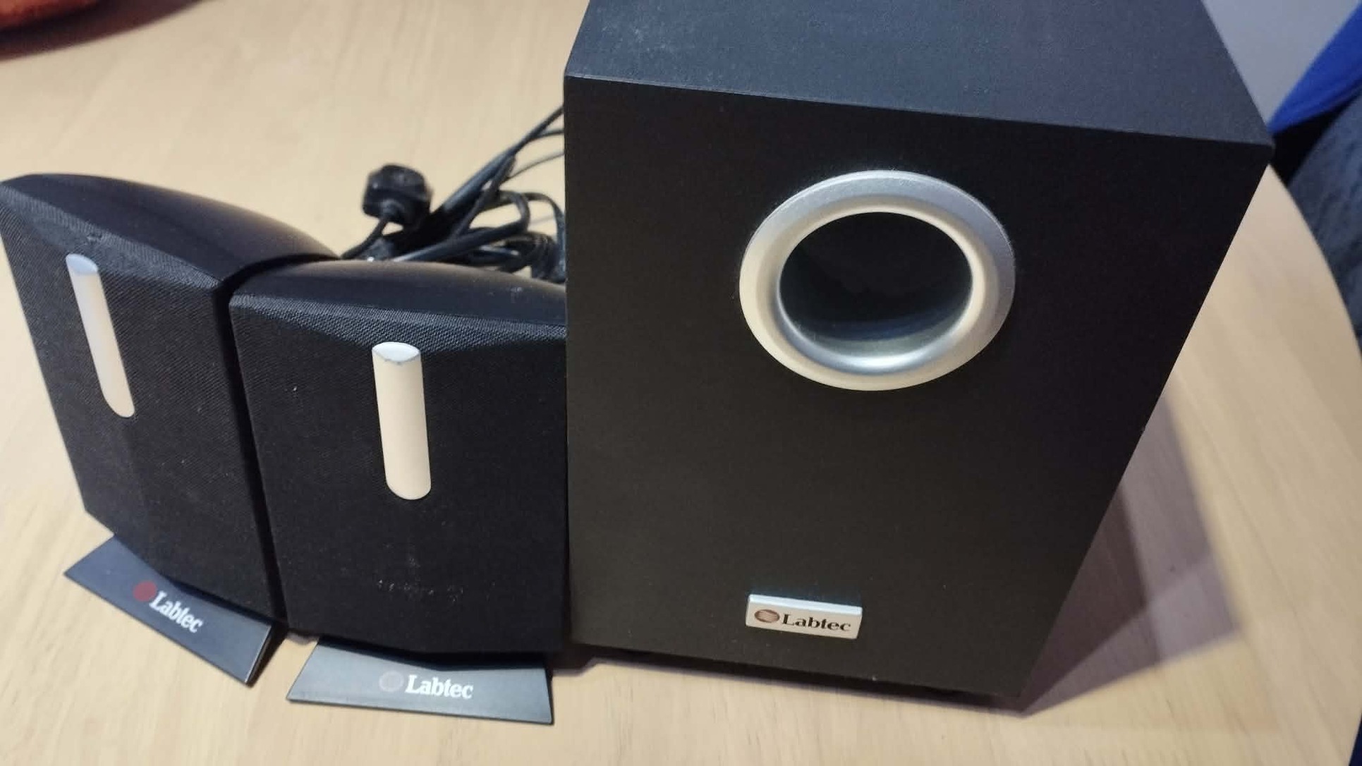 Számítógéphez/laptophoz használt Labtec 2.1 hangfal eladó a hozzá tartozó kábelekkel.
