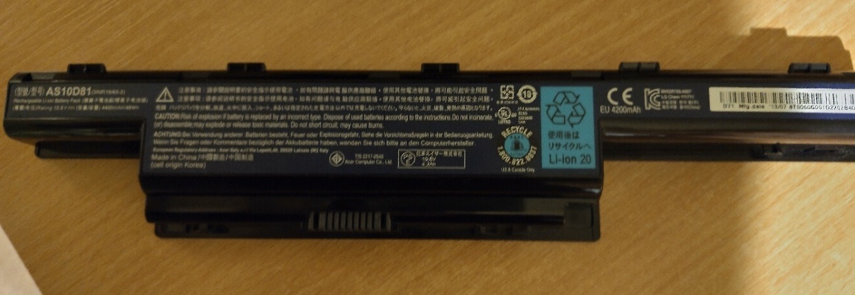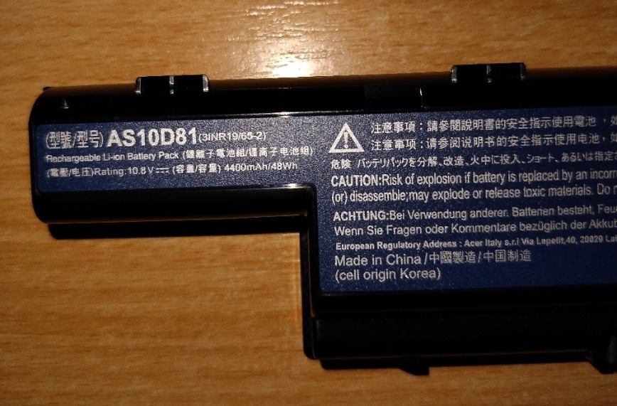 Eredeti AS10D81 akkumulátor, amit Acer Aspire E1-531 laptophoz használtam. Elhasználódás mértéke 29 % az AIDA64extreme program által megvizsgálva.