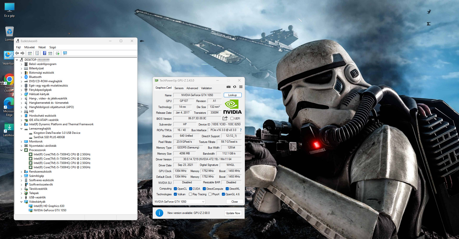 - Videókártya: NVIDIA® GeForce® GTX 1050, 4 GB GDDR5